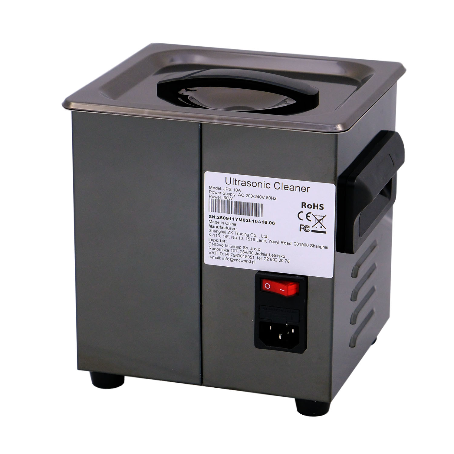 De ultrasoonreiniger GX10A is uitgerust met een tank van hoogwaardig roestvrij staal SUS304 met een capaciteit van 2L, een ultrasoon vermogen van 60W en een verwarming van 50W.